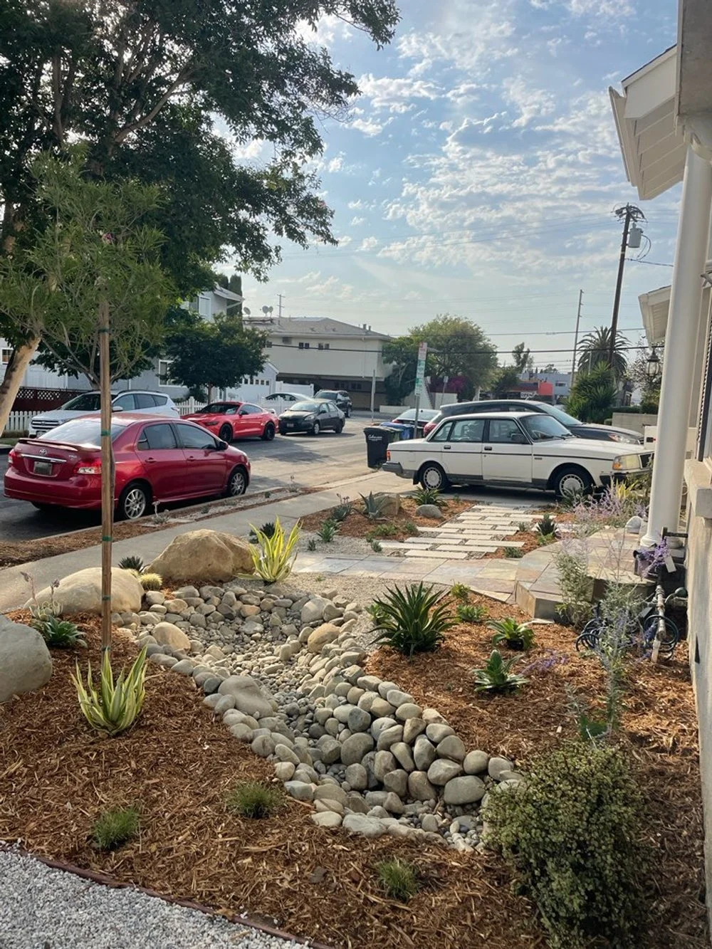 Culver City front yard with dry creek